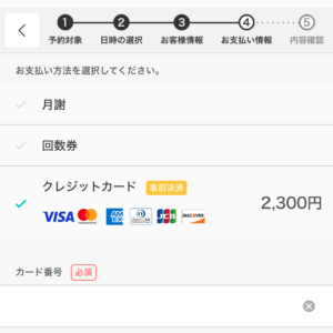 ※月謝加入後は、通常通り【予約ページ】よりご都合の良い日程を選択し、お支払い方法で【月謝】をご選択ください。